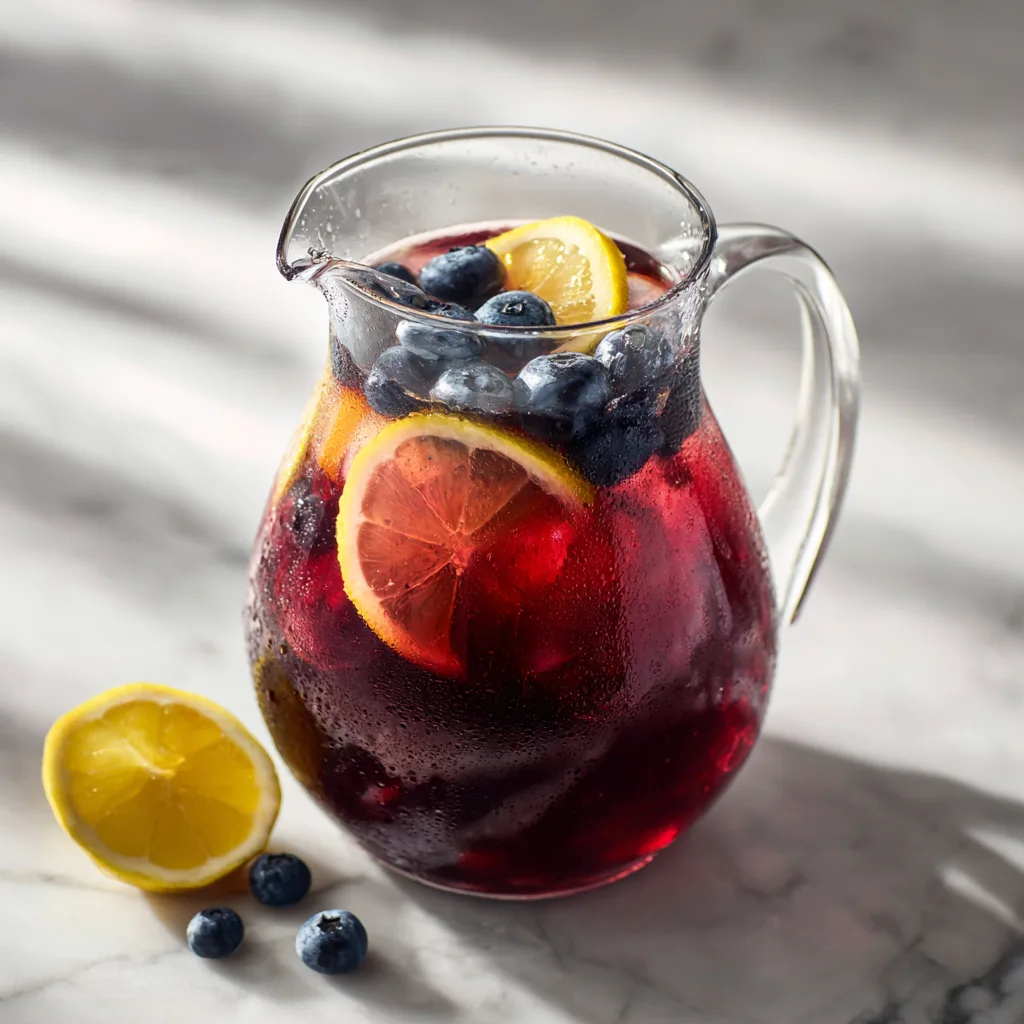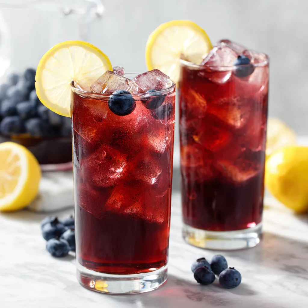 A refreshing fruity iced tea combining sweet blueberries and tangy lemon for the perfect summer cooler.