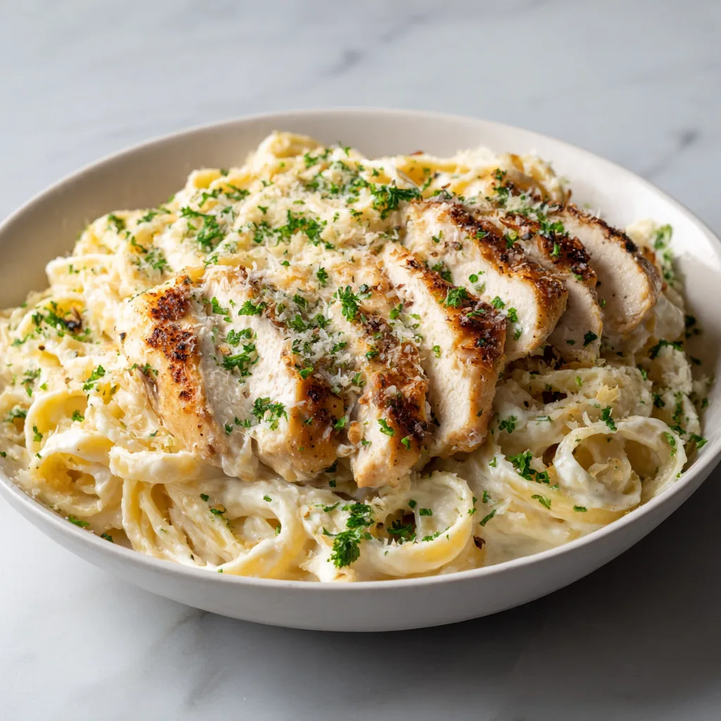 Place the chicken in the skillet and cook for about 5–7 minutes per side until golden brown and fully cooked. Remove from the pan and let rest for a few minutes before slicing into strips. - Make the Alfredo Sauce