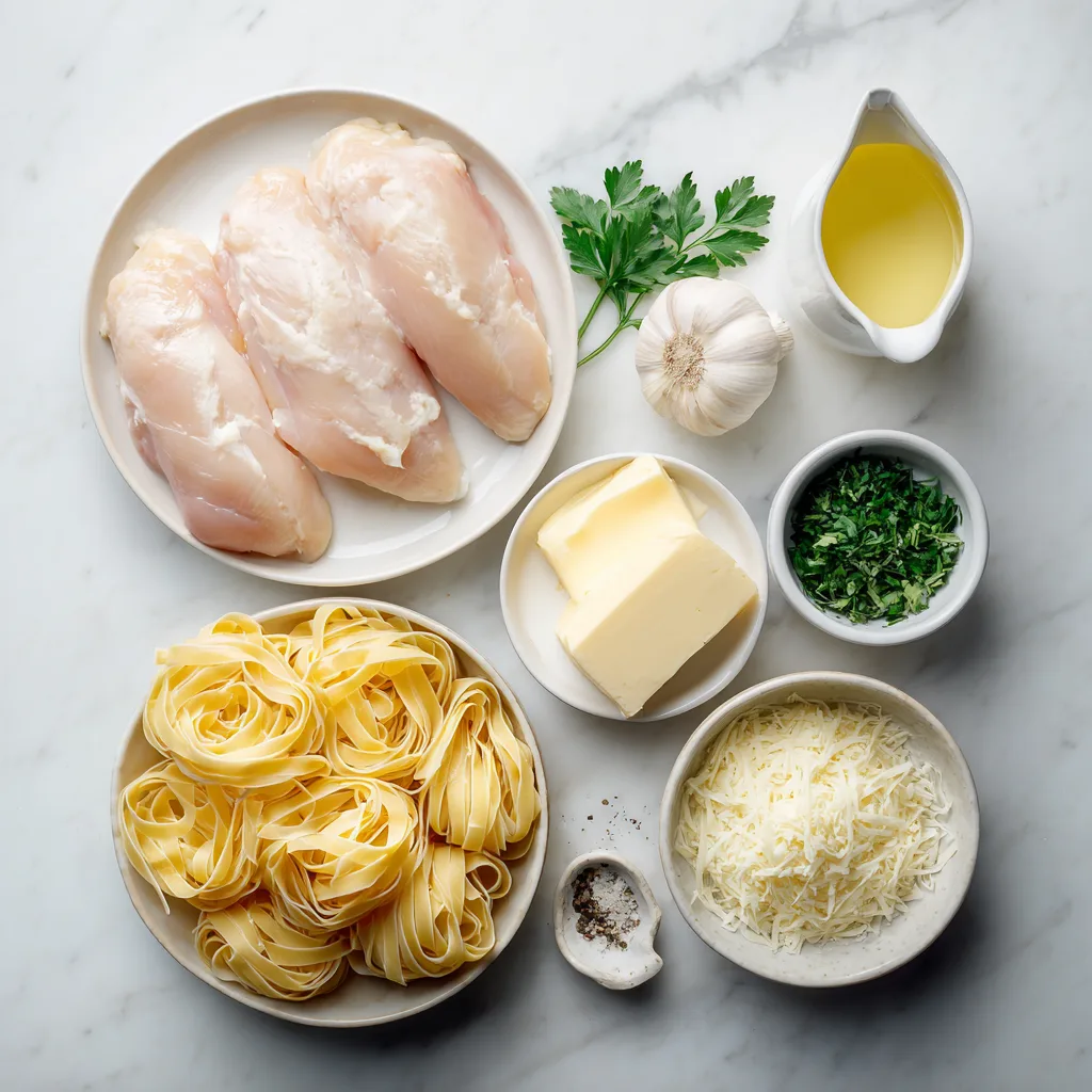 - Prepare Alfredo sauce with butter, garlic, cream, and parmesan, then combine with pasta and chicken.