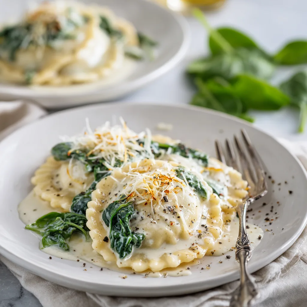 Few dishes capture the comforting elegance of Italian cuisine quite like Creamy Spinach Ricotta Ravioli. These delicate pasta pillows are filled with a silky mixture of ricotta cheese and spinach, then gently cooked and coated in a buttery, creamy sauce that highlights the flavors of the filling without overpowering them. Every bite offers a satisfying blend of tender pasta, creamy cheese, and fresh greens—making it a favorite for both special occasions and cozy dinners at home.