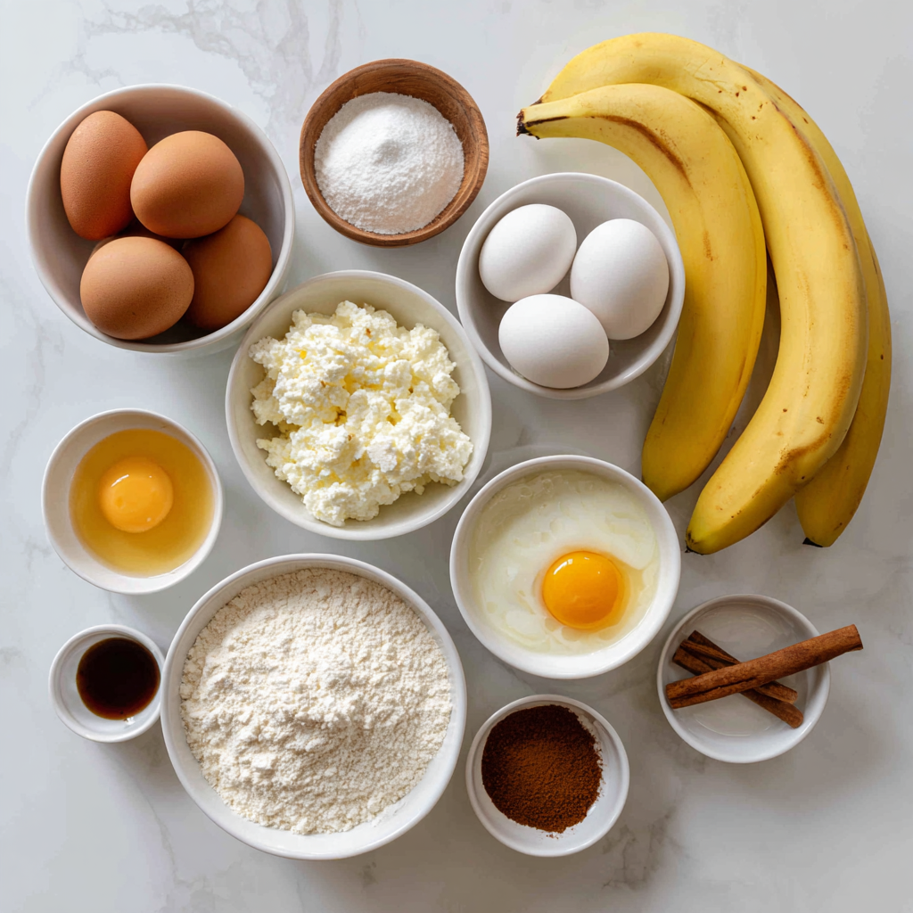 Here’s everything you need to make these fluffy banana cottage cheese pancakes: