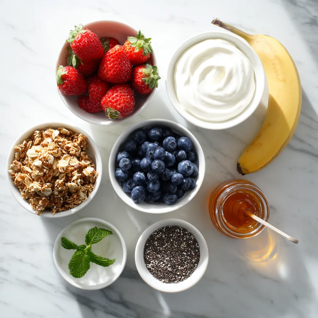 - Assemble yogurt in bowls and top with fruits, granola, and chia seeds.