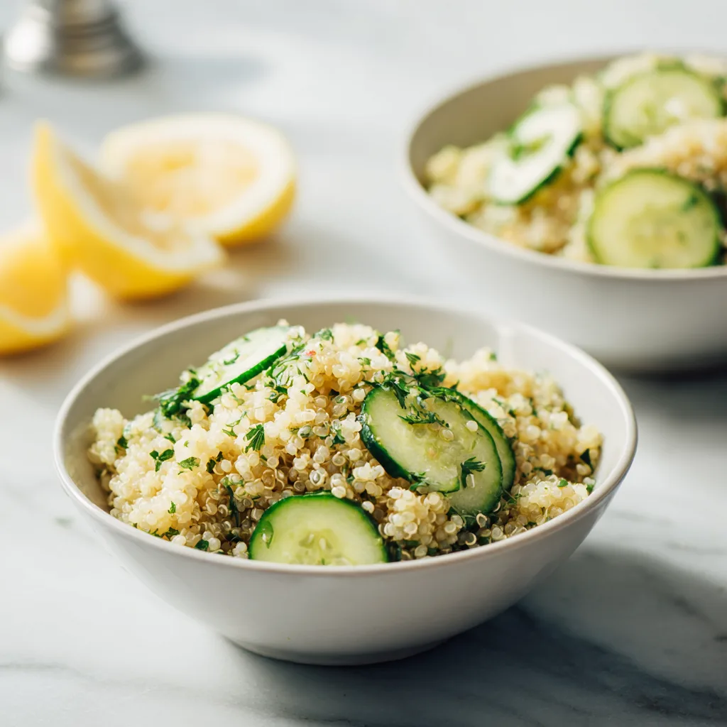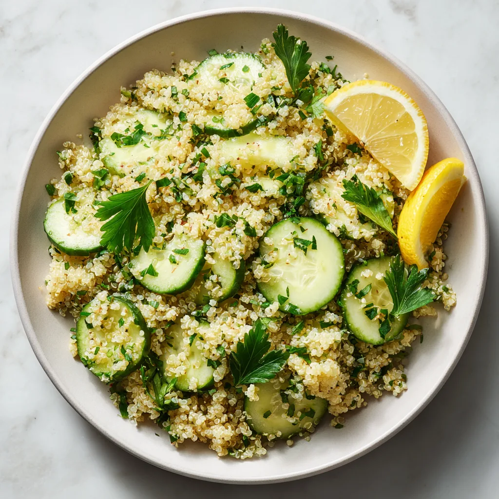 A light, refreshing quinoa salad packed with protein, crisp cucumbers, fresh herbs, and a bright lemon dressing.
