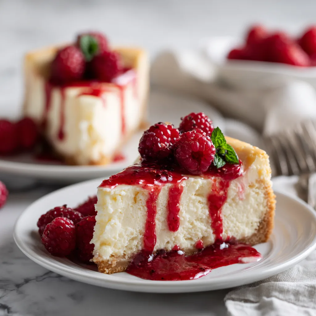 - Perfectly balanced flavor: The tartness of raspberries cuts through the richness of the cheesecake.