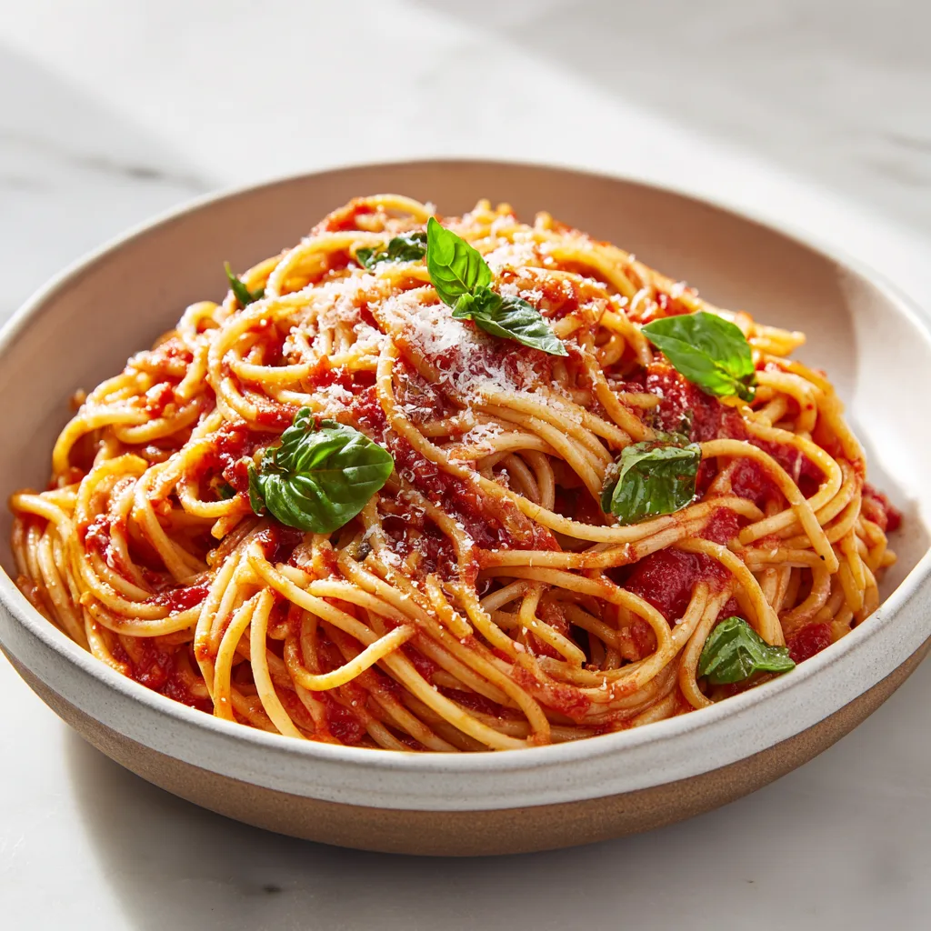 This spaghetti marinara recipe proves that simple ingredients can create extraordinary flavor. With its rich tomato sauce, fragrant garlic, and tender pasta, this dish remains one of the most beloved meals in Italian cooking.