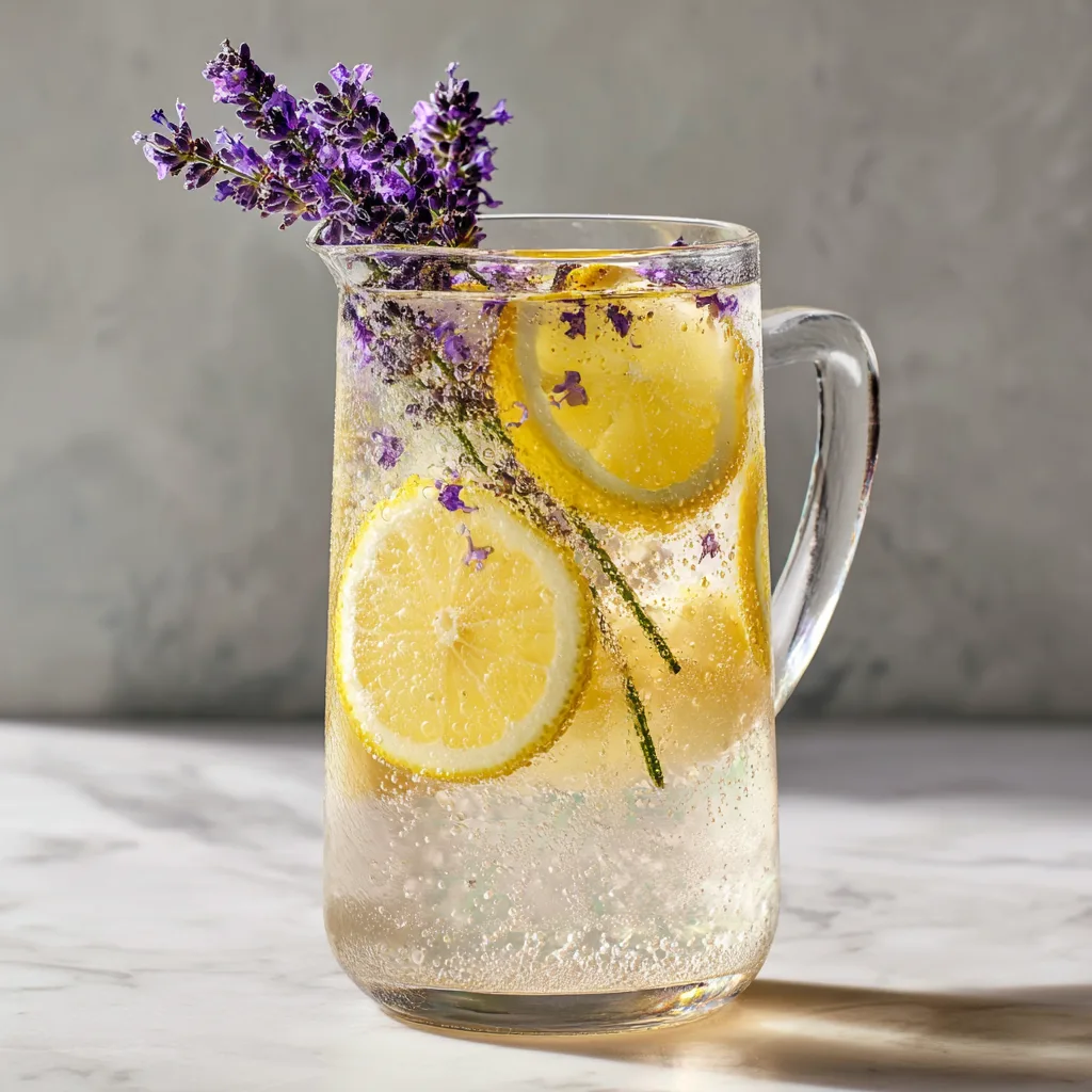 - Garnish with lemon slices and lavender sprigs and serve immediately.