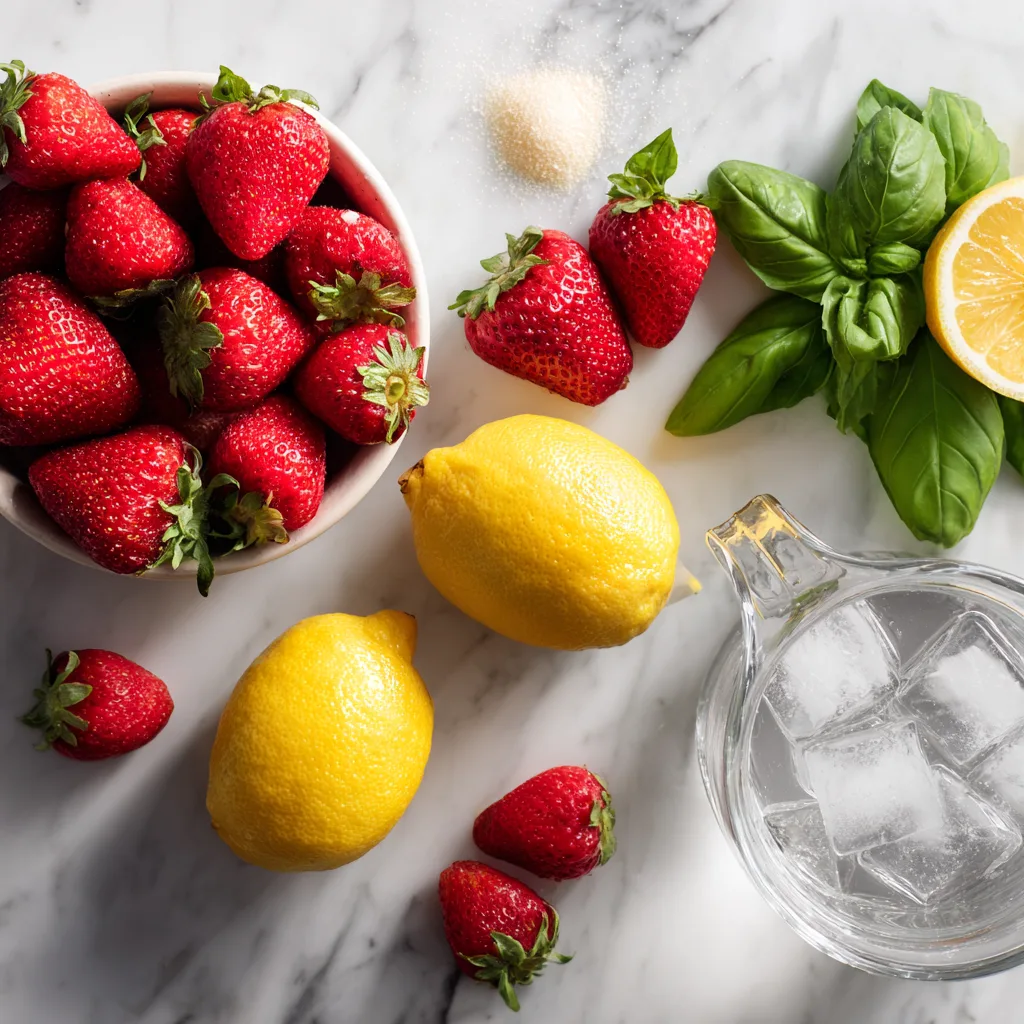 Strawberries provide natural sweetness and fruity depth, while basil contributes light peppery and herbal notes. When combined with lemon juice, the flavors balance perfectly—sweet, tangy, and aromatic.