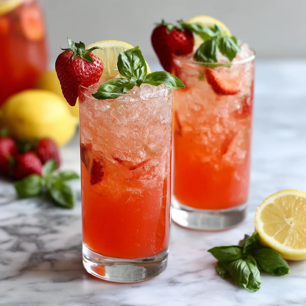 Fresh strawberries and lemons create a bright, fruity base that tastes far better than store-bought lemonade. The basil adds a subtle herbal twist that makes every sip feel gourmet.