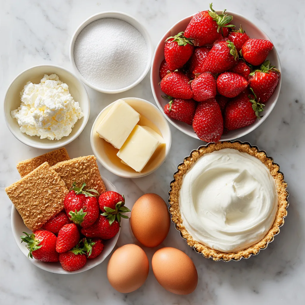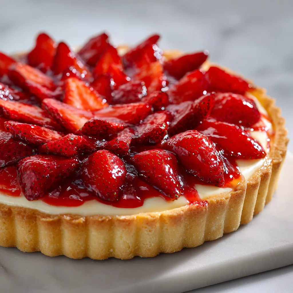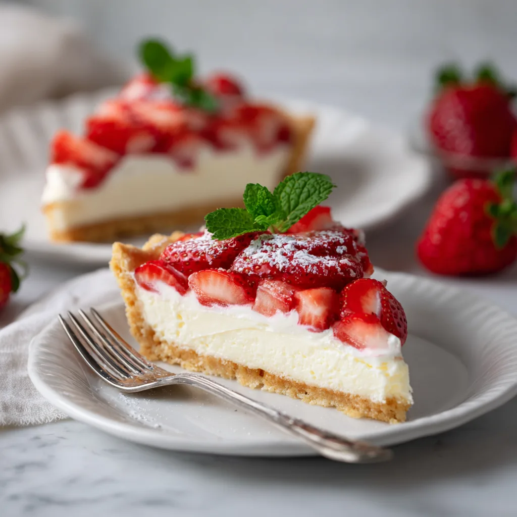 A creamy, elegant strawberry cheesecake tart with a buttery crust and fresh fruit topping.