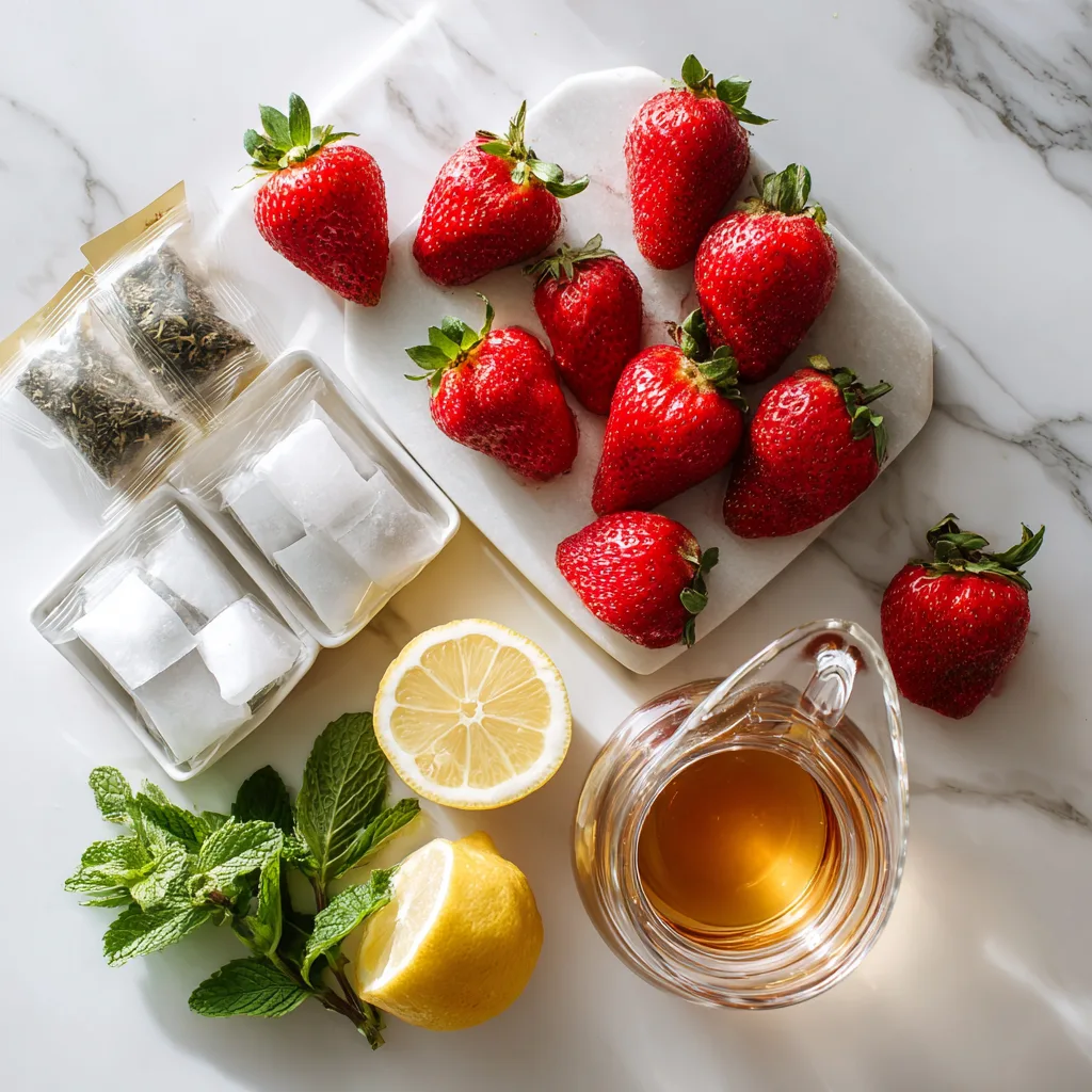 Add the green tea bags to the hot water and let them steep for 3–5 minutes. Remove the tea bags and allow the tea to cool to room temperature. - Prepare the Strawberry Base: