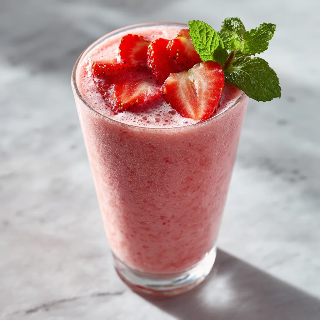 Pour into chilled glasses and garnish with fresh strawberry slices or mint leaves.
