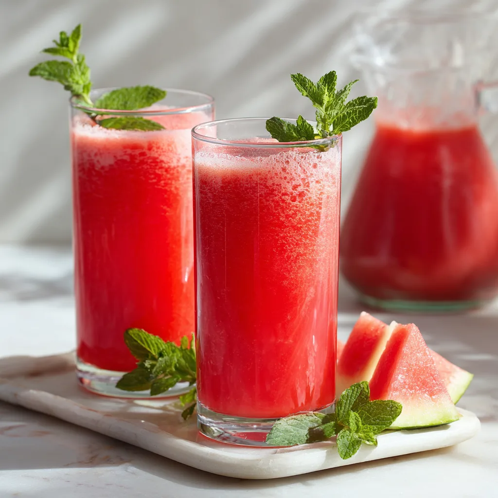 - Pour into glasses filled with ice and garnish with mint leaves or watermelon slices.